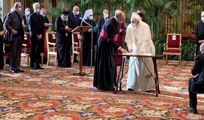 Katolik Kilisesi lideri Papa Francesco, Ortodoks Patrik Bartholomeos, Mısırlı El Ezher Baş İmamı Şeyh Ahmed el Tayyib ve Anglikan Kilisesi'nin Başpiskoposu Justin Welby'nin de aralarında bulunduğu dini lider ve temsilciler, COP26 zirvesine katılacak devletlere yönelik bir ortak çağrı metni imzaladı.
