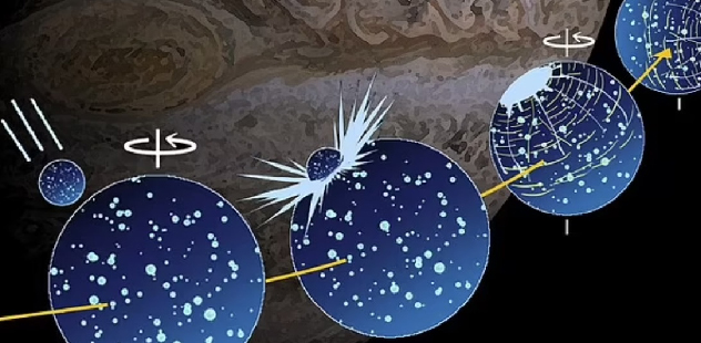 Araştırma ekibinden Hirata Naoyuki, Ganymede'e bir asteroitin çarptığını bildiklerini ama bu çarpmanın devasa etkisini yeni keşfettiklerini söyledi. Ganymede için yapılan yeni araştırmada, uydunun üzerinde dev bir krater tespit edildi. (Sözcü)