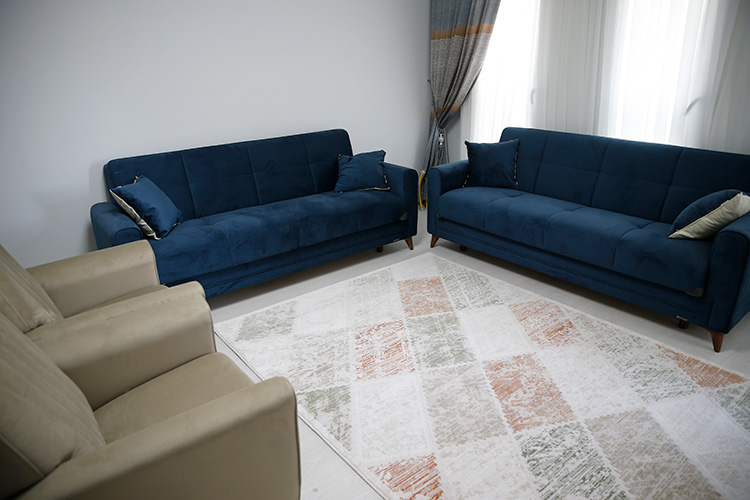 Kapısı, pencereleri, duş sistemi ve banyo ile mutfak mobilyaları yerleştirilen dairede oturma grubu, yatak odası, çocuk ve genç odası takımları da hazırlandı.