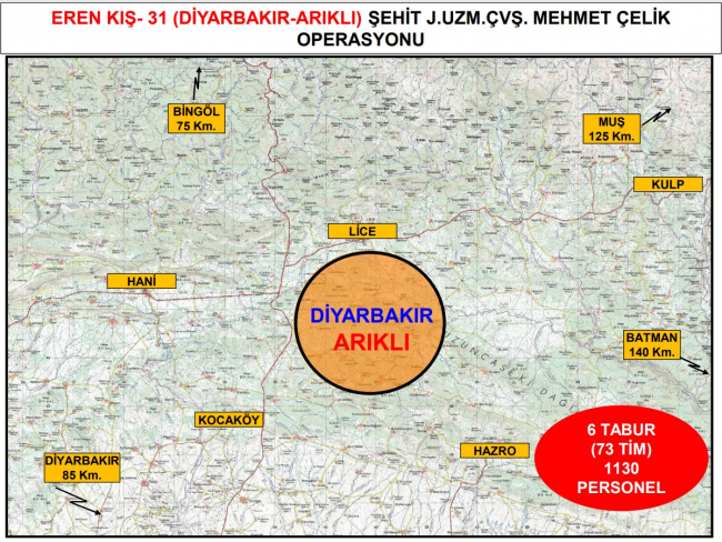 Bu kapsamda, Diyarbakır’da Eren Kış-31 (Diyarbakır-Arıklı) Jandarma Uzman Çavuş Mehmet Çelik operasyonu başlatıldı.