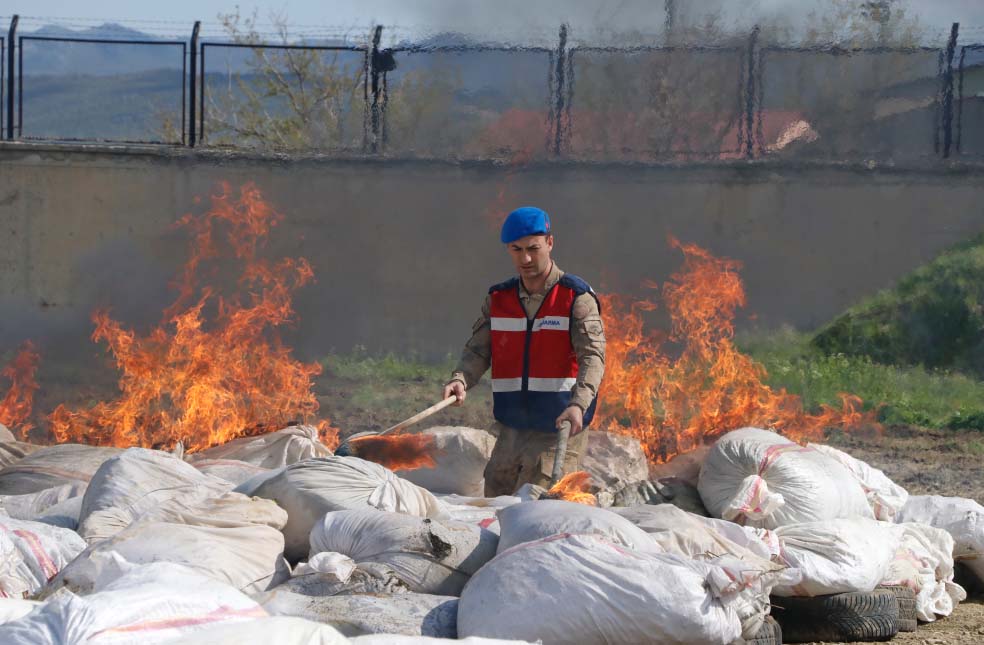 Piyasa değeri 10 milyar lirayı bulan uyuşturucu maddeler Diyarbakır Valiliği'nce oluşturulan heyet huzurunda Lice İlçe Jandarma Komutanlığı uyuşturucu madde imha alanında yakılarak imha edildi. Uyuşturucu maddelerin imhası için 200 litre mazot kullanıldı.
