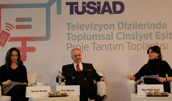 TÜSİAD Yönetim Kurulu Başkanı Erol Bilecik ve TÜSİAD Toplumsal Cinsiyet Eşitliği Çalışma Grubu Başkanı Oya Ünlü Kızıl'ın açılış konuşmaları ile başlayan toplantıda, proje kapsamında yürütülen “Televizyon Dizilerinde Toplumsal Cinsiyet Eşitliği Araştırması” sonuçları ve televizyon sektörü paydaşlarının katılımı ile gerçekleştirilen çalıştayda belirlenen “İlkeler” aktarıldı.
