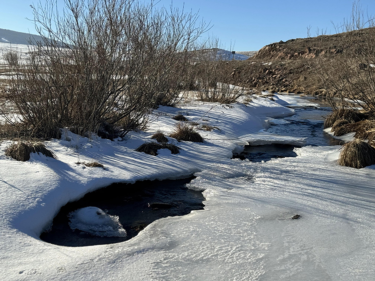 Kars Çayı'nın bazı bölümleri buzla kaplandı.