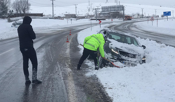 Bitlis'te etkili olan kar yağışı nedeniyle ulaşıma kapanan 290 yerleşim yerinin yolunun ulaşıma açılması için çalışmalar devam ederken, bazı araçlar da kontrolden çıkarak kara saplandı. İl Emniyet Müdürlüğü’ne bağlı Trafik Tescil Şube Müdürlüğü ekipleri, kara saplanan otomobillerin önündeki karları, kar kürekleri ile temizledikten sonra çıkarttı. Araç sürücüleri, kendilerine yardımcı olan polis ekiplerine teşekkür ederken, yetkililer, sürücülerin kış şartlarına uygun lastik kullanmaları, hızlarını düşürmeleri ve trafik kurallarına uymaları konusunda uyarılarda bulundu.