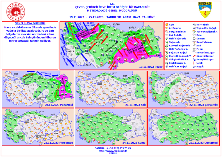 Bu akşam saatlerinden itibaren ise Doğu Anadolu’da görülecek yağışların, kuvvetli güneyli rüzgar ve yer yer fırtına (40-70 km/saat) ile birlikte gece saatlerinden itibaren bölgenin batısında (Malatya, Elazığ, Erzincan, Tunceli, Bingöl), yarın öğle saatlerinden sonra Erzurum’un güney ve batısı, Muş, Bitlis, Hakkari ve Şırnak çevrelerinde kuvvetli (21-75 kg/m2), Erzincan, Tunceli, Bingöl, Şırnak ve Hakkari çevrelerinde yer yer şiddetli (76-100 kg/m2) olacağı tahmin ediliyor.
