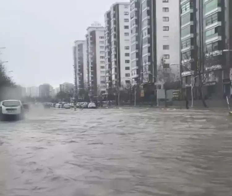 Mardin’in Kızıltepe ilçesinde etkili olan sağanak nedeniyle cadde ve sokaklar göle döndü, araçlar ve yayalar ilerlemekte güçlük çekti.