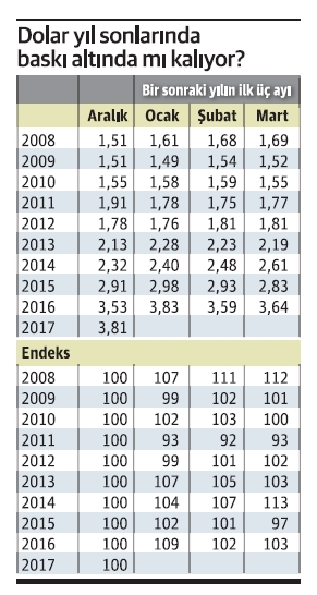 Aralık ayından ocak ayına geçişte son dört yılda, yani 2014-2017 döneminde dolar TL karşısında yüzde 2 ile yüzde 9 arasında değer kazandı.