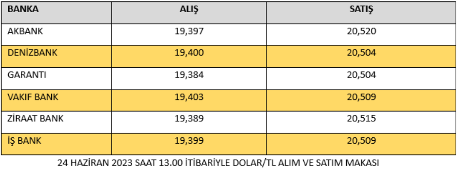 Bankaların saat 13.00 itibariyle dolar/TL fiyatlamaları şöyle oldu: