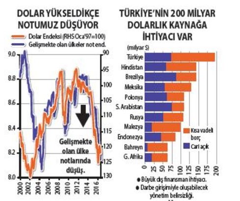 8 Ekim Cumartesi günü bu toplantılardan birinde bir sunum yapan Fitch uzmanları dünyanın genel bir röntgenini çektikten sonra not indirimleri ile ilgili bir tablo yayımladı. Bu tabloda şimdiye kadar yatırım yapılabilir kredi notunu kaybeden ülkeler incelendi. 7 ayrı kritere göre incelenen ülkelerin son 3 yıllık performansı çıkarıldı. Daha sonra bu kriterler tam sınırdaki yani yatırım yapılabilir notunda olan Rusya, Türkiye ve Güney Afrika ile karşılaştırıldı. Bu karşılaştırma sonucunda Rusya’nın sınıfı geçtiği Güney Afrika ile Türkiye’nin ise sınıfta kaldığı gösterildi. Bu sunumun ardından pazartesi günü dolar önce 3.07’ye ertesi gün 3.08’e çıktıktan sonra 3.08 ile 3.09 arasında dalgalandı. Sonra da tarihi zirvesine tırmandı. Fitch çalışmasına göre Rusya 7 kriterin 3‘ünden Türkiye 4’ünden ve Güney Afrika ise 5’inden sınıfı geçemedi. Türkiye büyüme, kamu dengesi ve kamu borç yükünde notunu kaybetmiş ülkelerden daha iyi performans gösterirken enflasyon, cari açık, net dış borç ve yönetim kalitesi açısından daha kötü performans gösterdi. Türkiye’nin yüzde 8.2 olan enflasyonu başarısız olan ülkelerin 3 yıllık ortalaması olan 0.2 eksi enflasyonun çok üstünde kaldı. Milli gelirin yüzde 4.3’ü düzeyine ulaşan cari açık not sınırının altına düşen ülkelerin yüzde 3.5 olan fazlasından daha kötü durumda bulunuyor. Milli gelirin yüzde 36.8’ine ulaşan net dış borçta da kriter ülkelerin durumu yüzde 9 olarak ölçüldü. Yani Türkiye bu alanda karnesi zayıf ülkelerinden de yaklaşık 3.5 kat daha kötü göründü. Reyting şirketleri ‘Governence’ adıyla not verdiği yönetim kalitesi diye adlandırılabilecek değerlendirmede, düzenleyici kuruluşların kalitesi, hükümetin etkinliği, siyasi istikrar ve şiddetin olmaması ve yöneticilerin hesap vermesi gibi kriterler hesaplanıyor.