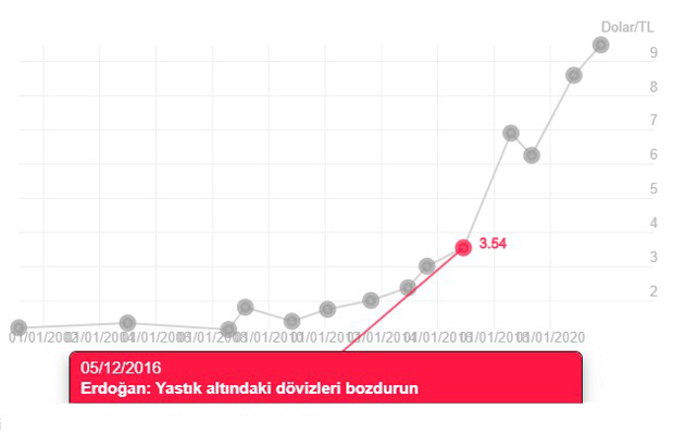 Bu arada ABD Merkez Bankası’nın 2008 küresel finans krizinde piyasaya sürülen paraları geri çekmeye başlamasıyla Türkiye gibi gelişmekte olan ülkelere giden para miktarı da azaldı. Erdoğan, TL’deki değer kaybına karşı vatandaşlardan yastık altındaki dövizlerini bozdurmasını istedi. Erdoğan’ın faizleri indirmesi için sert sözlerle çıkıştığı Merkez Bankası Başkanı Başçı’nın görev süresiyse doldu, yerine yardımcısı Murat Çetinkaya atandı. Dolar, 2016 yılını 3,5 TL seviyesinden kapattı.