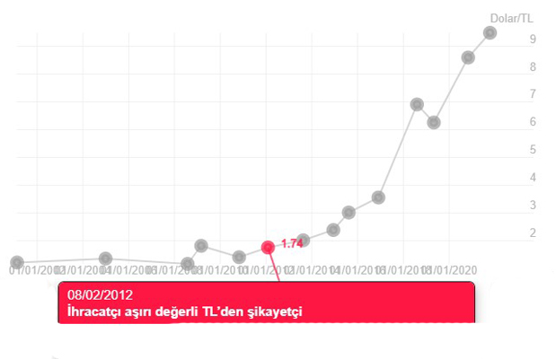 2008 yılında ‘1 dolar 1 TL olur mu’ tartışmalarının yapıldığı ve ihracatçıların Türk Lirası’nın döviz karşısında aşırı değerlenmesinden şikayetçi olduğu dönemin ardından dolar 2013 yılında yükselmeye başladı.