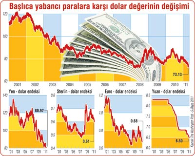Doların değerinin, satın alma gücünün erimesinin arkasında ekonominin gücü ve bir ölçüde ABD’nin siyasi ve politik gücüne dayalı “marka” imajının yukarı çıkmasının veya aşağıya inmesinin etkisi var. Krizden çıkma çabasındaki ABD ekonomisinde, varlık değerleri eski çizgilerinin çok altında. İnsanlar varlıklarını kaybetme duygusundan kurtulamamış durumda. Faiz oranları düşük. Borsa yeterince canlı değil. İşsizlik yüzde 9 oranında kaldı. Reel ücretler artmıyor. Petrol fiyatı artışı tüketiciye yansımaya başladı. Dış ticaret yılda 497 milyar dolar açık veriyor. 2010 yılında bütçe, 1.1 trilyon dolar açık verdi. Kamu borcu 9.5 trilyon dolara yükseldi. Bütçe açığının milli gelire oranı yüzde 8, kamu borcunun oranı yüzde 64.6 oldu. ABD 1947-2010 arası ortalama yüzde 3.3 büyüdü. 2011 ilk 3 aylık büyüme 1.8 oranında gerçekleşti.