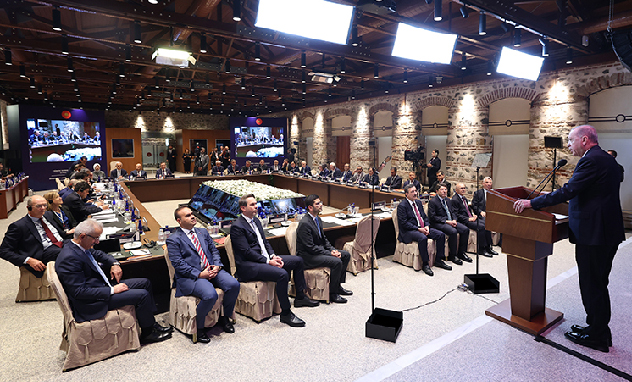 Dolmabahçe Çalışma Ofisi’nde, 2016 yılından bu yana ilk kez gerçekleştirilen toplantının açılış konuşmasını, Cumhurbaşkanı Erdoğan yaptı.