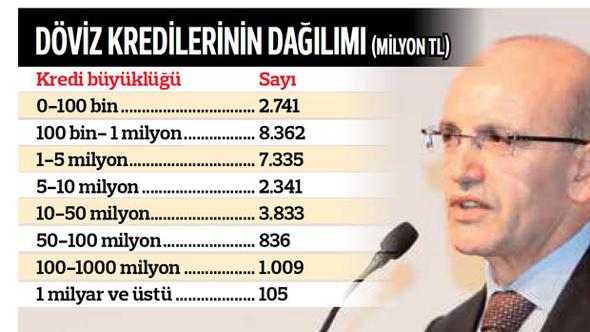 MERKEZ Bankası uzmanlarının çalışmasında firmaların borçları da sıralandı. 100 bin liraya kadar döviz borcu olan firma sayısı 2 bin 741. 100 bin ile 1 milyon lira arasında döviz borcu olan şirket sayısı 8 bin 362, 1 ile 5 milyon lira arasında borcu olan şirket sayısı 7 bin 335, 5-10 milyon lira arasında 2 bin 341, 10-50 milyon lira arası 3 bin 833 firma, 50-100 milyon lira arası borcu olan şirket sayısı 836, 100 milyon lira ile 1 milyar lira arasında borcu olan firma sayısı bin 9, 1 milyar lira üstü borcu olan firma sayısı da 105. Toplam 26 bin 562 şirketin döviz borcu bulunuyor. 50 milyon liranın altında borcu olan şirket sayısı 24 bin 562. (Hürriyet / Neşe Karanfil)