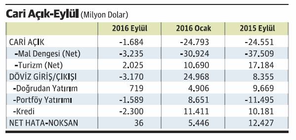 Eylül ayında doğrudan yatırım hesabından ülkeye net döviz girişi 719 milyon dolar oldu. Buna karşılık portföy yatırımlarından (borsa ve devlet iç borçlanma senetlerinden) 1.5 milyar dolar çıkış oldu. Döviz kredisi hesabından 2.3 milyar dolar ödeme yapıldı. İşte bu 3 kanaldaki döviz giriş çıkışı sonucu ülkeden çıkan net döviz toplamı 3.1 milyar dolar oldu.