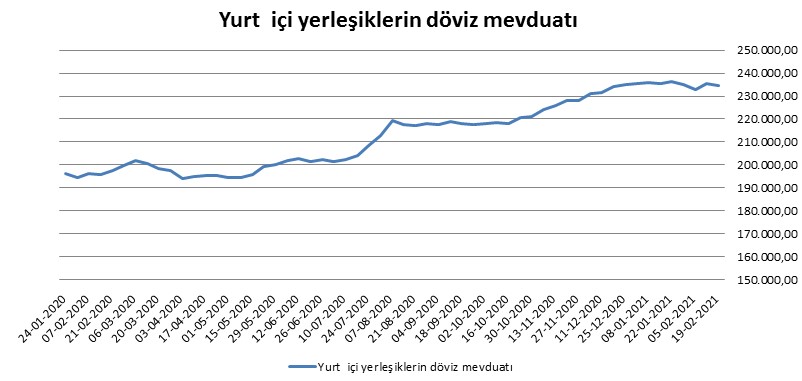 19 Şubat haftası itibariyle yurt içi yerleşiklerin 234,7 milyar dolarlık döviz mevduatlarının 37,7 milyar dolarını kıymetli madenler oluşturdu. Başka deyişle döviz mevduatları içinde kıymetli madenlerin payı yüzde 16 oldu.