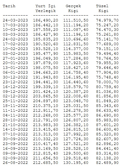 Türkiye Cumhuriyet Merkez Bankası(TCMB) tarafından açıklanan verilere göre, bir önceki hafta 186 milyar 442,1 milyon dolar olan yurt içi yerleşiklerin döviz mevduatı 24 Mart ile sona eren haftada 186 milyar 490,20 milyon dolara geldi.