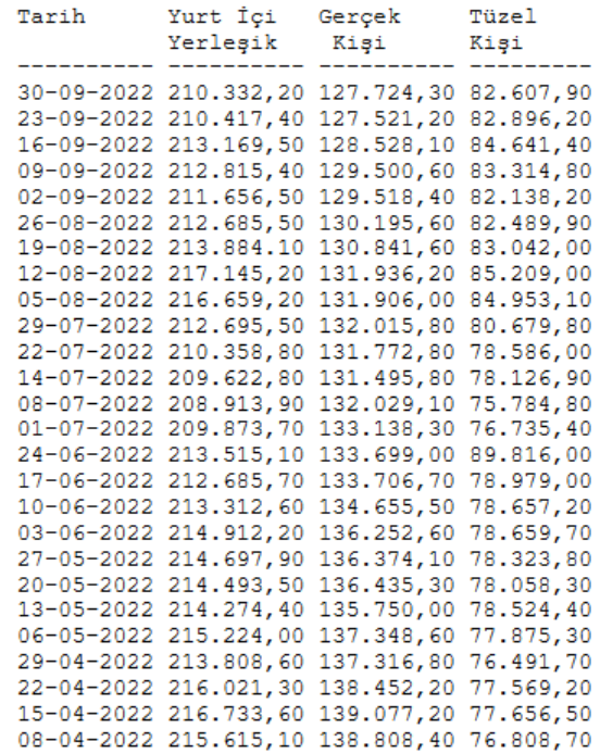 Türkiye Cumhuriyet Merkez Bankası(TCMB) tarafından açıklanan verilere göre, bir önceki hafta 210 milyar 417,4 milyon dolar olan yurt içi yerleşiklerin döviz mevduatı 30 Eylül ile sona eren haftada 210 milyar 332,20 milyon dolara geldi.