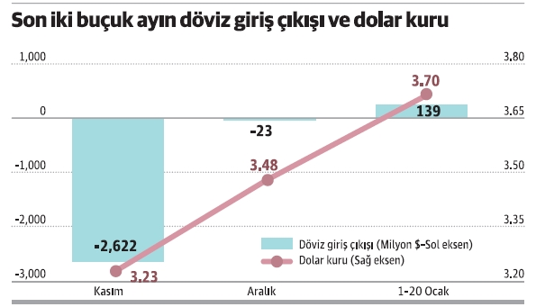 Yabancı yatırımcılar asıl satışı doların ay ortalaması bazında henüz 3.23 düzeyinde bulunduğu kasım ayında gerçekleştirdiler. Söz konusu aydaki yabancı satışı tam 2.6 milyar doları buldu.