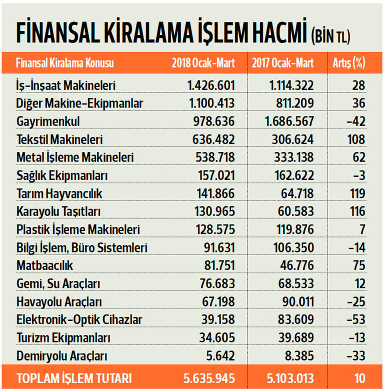Bir taraftan dövizdeki artış diğer taraftan mayıs ayında uygulamaya giren döviz ile borçlanmaya getirilen kısıtlamanın işlemlerin yüzde 70’nin yabancı para ile yapıldığı, bunun da büyük kısmının Euro ağırlıklı olduğu finansal kiralamada TL’ye talebi artırdı.