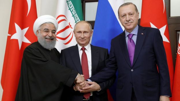 Bu kapsamda 7 Eylül'de İran'ın başkenti Tahran'da Erdoğan, Putin ve Ruhani arasında yılın üçüncü zirvesi gerçekleştirildi. Bu zirve kapsamında Erdoğan hem Putin hem de Ruhani ile baş başa görüşmeler yaptı.