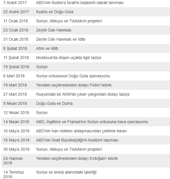 Putin ile Erdoğan arasında son 30 ayda yapılan telefon görüşmeleri ise şöyle: