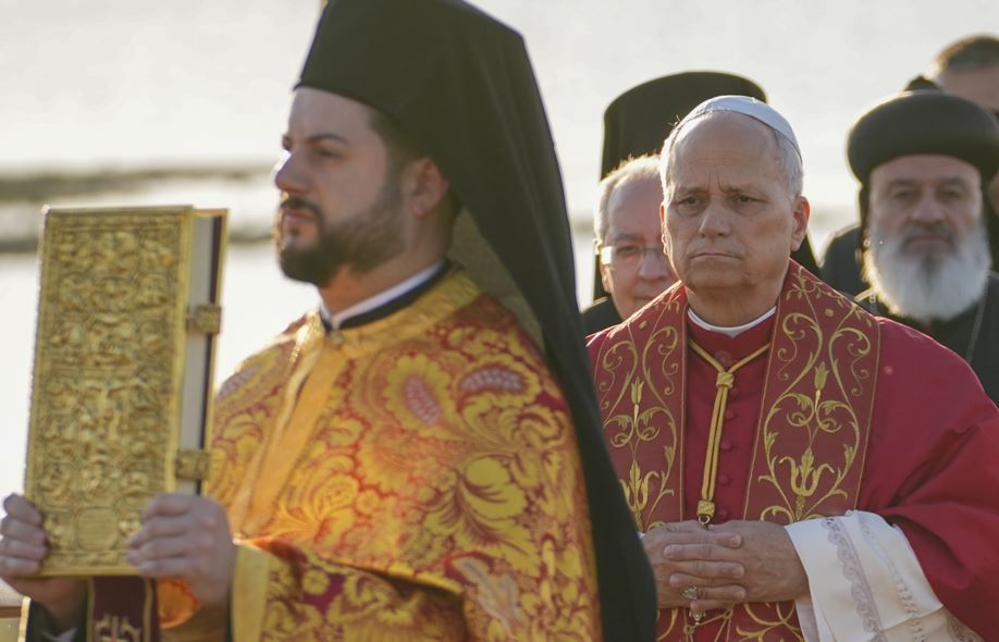 Ayin Türkçe, İngilizce ve Latince ilahilerle başladı. Herkesin Su Altı Bazilikası'ndaki iskeledeki yerlerine geçmesiyle birlikte Rum Ortodoks Patriği 1. Bartholomeos, konuşmasına başladı.