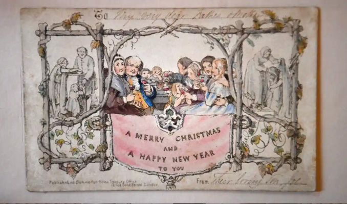 Ünlü yazar Charles Dickens’ın ‘Bir Noel Şarkısı’ adlı kitabının yayımlandığı 1843 yılında basılan dünyanın ilk Noel kartı, yıl sonuna yaklaşırken görücüye çıktı.