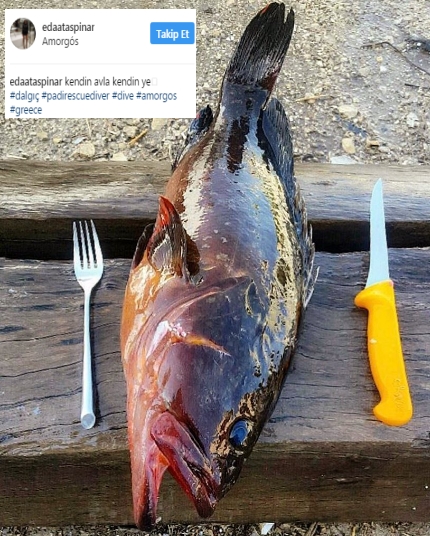 Teknesini Amorgos Adası açıklarında demirleyen Taşpınar, zıpkınla orfoz balığı avladı. Daha sonra balıkları mangalda pişirip bir güzel mideye indiren ünlü ikoncan, bu anlarını da instagram'da "Kendin avla kendin ye" notuyla paylaşınca faka bastı! Zira Yunanistan kanunlarına göre Avrupa Birliği vatandaşı olmayan birinin ülke sınırları içerisinde zıpkınla balık avlaması yasak.