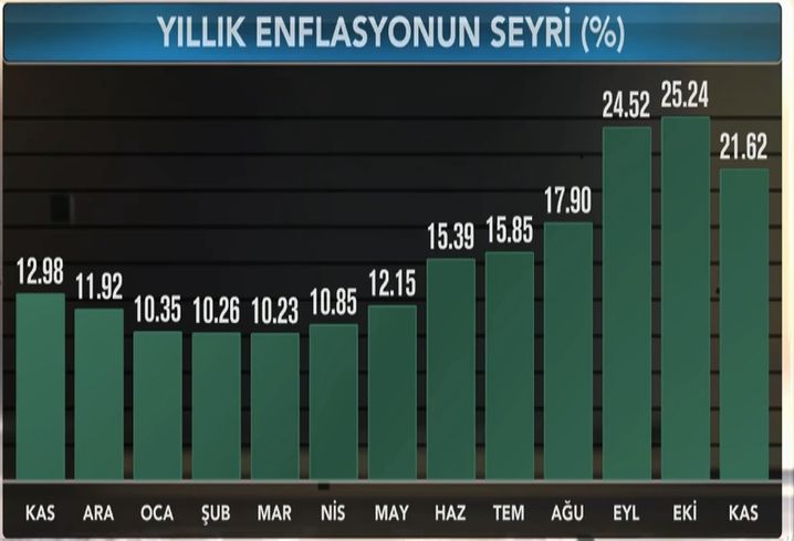 Türkiye Aralık enflasyon verisi yarın açıklanacak. Kasım'da %21.62 olan yıllık enflasyonun %20.60, aylık bazda ise %1.44 düşen TÜFE'nin eksi 0.78 olması bekleniyor.