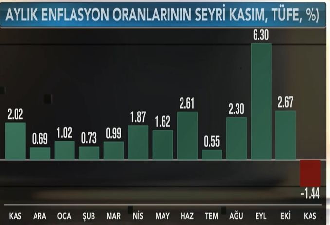 Erkan vergi teşviklerinden gelen fiyat indirimlerinin ilgili sektörlerde yıllık artış oranlarının gerilemesinde etkili olabileceğini belirtirken gıda fiyatlarında da Kasım ayında belli oranda stabilizasyon sağlandığını hatırlattı.