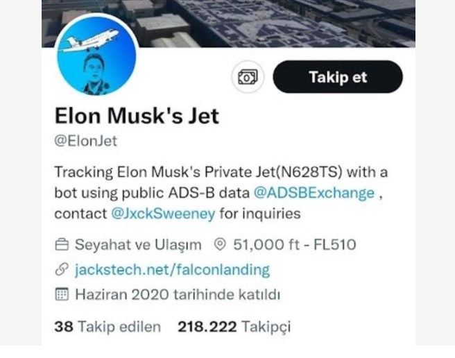 Florida Üniversitesi 1’inci sınıf öğrencisi 19 yaşındaki Jack Sweeny, özel uzay şirketi SpaceX ve Tesla'nın CEO'su Elon Musk’ın özel jetini izlemesini sağlayan bir algoritma geliştirdi. Sweeny’nin, özel jetin konum bilgilerini sosyal medya hesabından paylaşmasının ardından Musk, özel jetinin izlenmesinin “güvenlik endişesine” neden olduğunu söyledi.
