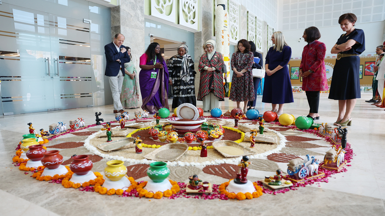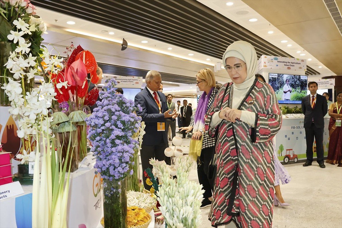 Lider eşleriyle buradaki Nanaji Deshmukh Bitki Fenotik Merkezi'ni ziyaret eden Emine Erdoğan, Hindistan'da Uluslararası Darı Yılı olması dolayısıyla merkezdeki darı temalı stantları gezerek yetiştirilen ürünler ve yapılan çalışmalara ilişkin bilgi aldı.