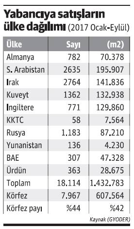 GYODER olarak kendi iç yapılarında hazırladıkları “Housing and Property” adlı bilgilendirme kitapçığını yurtdışındaki fuarlarda dağıttıklarını ayrıca büyükelçiliklere ve Türk Hava Yolları’na verdiklerini kaydeden Yetgin, “Yabancıya satış cari açık finansmanı gibi konularda önemli. Bu konuda bakanlıkların tedbir alması gerekir. Halihazırda yabancılara yapılan yıllık satış miktarı 4-5 milyar dolar arasında. Bu rakamın 15-20 milyar dolarlara çıkarılması gerekir” diye konuştu.