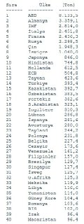 ABD 8.133,5 ton rezervle ilk sıradaki yer alırken, Almanya 3.359,1 ton ile ikinci sırada, IMF 2.814,0 ton ile üçüncü sırada bulunuyor. İlk üç sırada bir önceki döneme göre değişiklik olmadı.