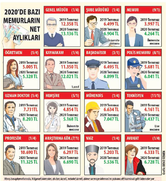 Bu çerçevede aile yardımı ödeneği dahil en düşük memur maaşı 3 bin 747 liradan 4 bin liraya, en düşük memur emekli aylığı 2 bin 523 liradan 2 bin 661 liraya yükseldi.