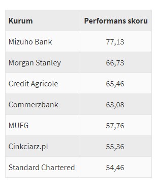 Commerzbank, MUFG, Cinkciarz.pl ve Standard Chartered da en iyi dolar/TL tahmincileri arasında yer aldı.