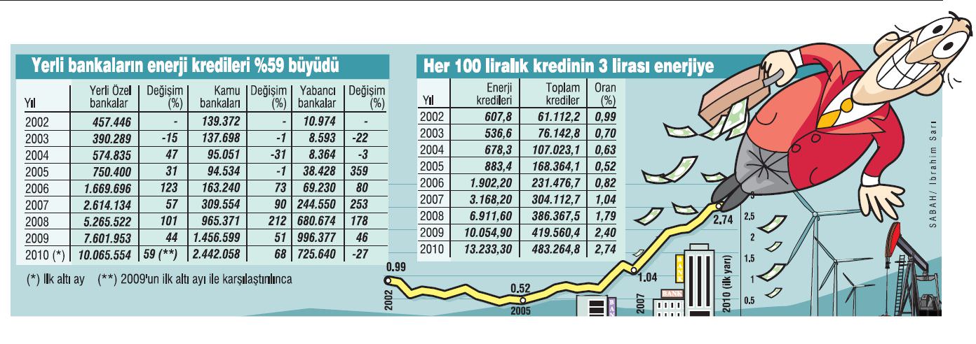 Enerji sektörü Türk bankalarına da enerji verdi. Küresel krizin yaşandığı geçtiğimiz yıl ve bu yılın ilk yarısında enerji sektörüne yönelik olarak bankaların verdiği krediler oldukça hızlı bir şekilde arttı. Toplam krediler içindeki enerji kredilerinin oranı yüzde 0.6'lardan yüzde 3'lere kadar çıktı. Önde gelen Türk bankaları geçmiş 4- 5 yıl içinde özel sektör yatırımlarına yaklaşık 10 milyar dolar tutarında finansman sağladı. Kamu bankalarının da girişiyle birlikte bu katkının daha da artacağı düşünülüyor. Dünyadaki proje finansmanı hacminin yaklaşık yüzde 36'sı enerji kaynaklı. Enerji sektörü, 106 milyar dolar ile 2009'da da toplam hacmin içinde en yüksek payı alan sektör olmaya devam etti. Uluslararası Enerji Ajansı'nın 2009 raporuna göre, dünya enerji talebinin 2030'a kadar toplamda yüzde 40 artması bekleniyor ve bu talep artışını karşılamak için her yıl 1.1 trilyon dolarlık yeni yatırım yapılması gerekiyor.
