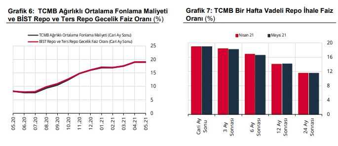BİST Repo ve Ters-Repo Pazarı’nda oluşan cari ay sonu gecelik faiz oranı beklentisi bir önceki anket döneminde yüzde 19,03 iken, bu anket döneminde yüzde 19,00 olarak gerçekleşmiştir. TCMB Ağırlıklı Ortalama Fonlama Maliyeti cari ay sonu beklentisi bir önceki anket döneminde ve bu anket döneminde yüzde 19,00 olmuştur. TCMB bir hafta vadeli repo ihale faiz oranı cari ay sonu beklentisi ise bir önceki anket döneminde ve bu anket döneminde yüzde 19,00 olarak gerçekleşmiştir.