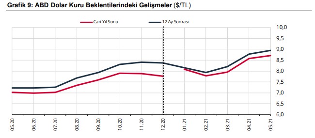 Cari yıl sonu döviz kuru (ABD Doları/TL) beklentisi bir önceki anket döneminde 8,57 TL iken, bu anket döneminde 8,71 TL olmuştur. 12 ay sonrası döviz kuru beklentisi ise bir önceki anket döneminde 8,78 TL iken, bu anket döneminde 8,95 TL olarak gerçekleşmiştir.