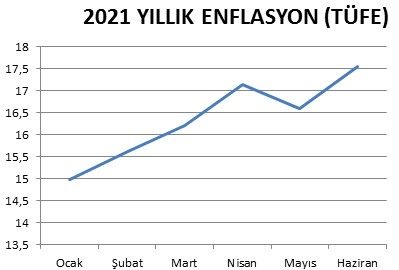 Mayıs ayında gerileyen enflasyonun kısıtlamaların ortadan kalkmasıyla Haziran'da yüzde 1,5 civarı artması ve yüzde 17'ye yükselmesi bekleniyordu.