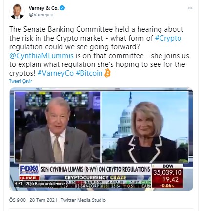 Cumhuriyetçi Senatör ve Bitcoin destekçisi Cynthia Lummis, Fox Business kanalındaki katıldığı “Varney & Co” programında yaptığı açıklamada, kripto için yasal çerçeve oluşturulması ve Bitcoin madencilerini ABD'ye yerleşmeye teşvik etmek için destek sunulması çağrısında bulundu.