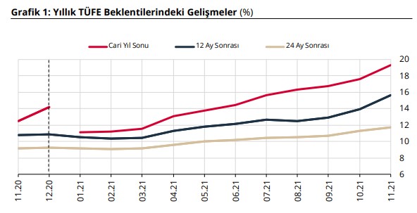 24 ay sonrası TÜFE beklentisi ise aynı anket dönemlerinde sırasıyla yüzde 11,27 ve yüzde 11,76 olarak gerçekleşti.