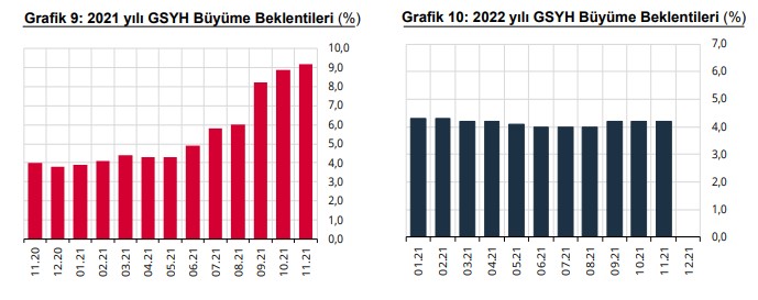 GSYH 2022 yılı büyüme beklentisi ise bir önceki anket döneminde olduğu gibi yüzde 4,2 olarak