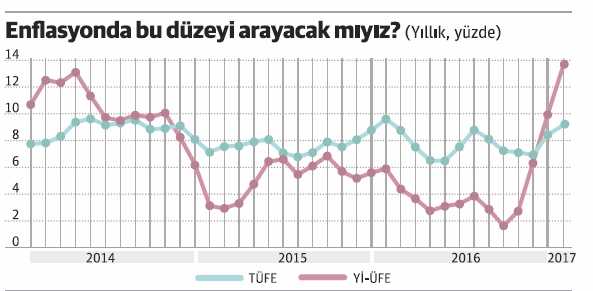Yılsonunda TÜFE'nin "kaç olacağını" tam olarak söyleyemeyiz belki ama "kaç olmayacağını" tam olarak söyleyebiliriz. Merkez Bankası'nın daha şimdiden yüzde 8'e çıkarmak zorunda kaldığı 2017 tahmini tutmayacak, işte bunu söyleyebiliriz.