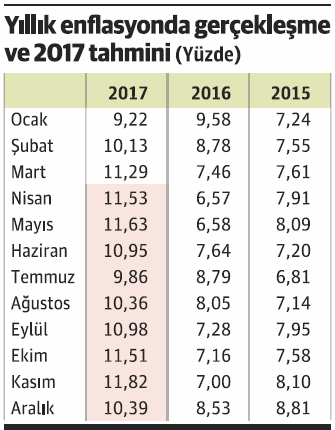 Bu yıl için enflasyon hedefi orta vadeli programa göre yüzde 6.5 olarak belirlenmişti. Ancak Merkez Bankası, yılın ilk enflasyon raporunda tahminini yüzde 8 olarak açıkladı.