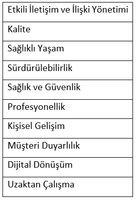 Enocta’nın 3 milyona yakın değerlendirmeyi baz alarak derlediği verilere göre 2022 yılında çalışanlar, bir yandan ofis ortamına yeniden geçişte öne çıkan iletişim ve yönetim sorunlarına, diğer yandan 2022 yılının ilk yarısında etkisi devam eden pandemi nedeniyle sağlık, sürdürülebilirlik ve kalite konusuna yöneldiler. Çalışanların 2022 yılında tercih ettiği ilk 5 yetkinlik ve konu: “Etkili İletişim ve İlişki Yönetimi”, “Kalite” “Sağlıklı Yaşam”, “ Sürdürülebilirlik”, “Sağlık ve Güvenlik” oldu.