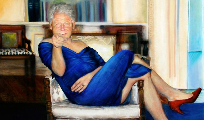 Milyarder işadamının malikanesinde yapılan aramada, Bill Clinton'ın Oval Ofis'teki bir koltuğa uzanmış, Hillary Clinton'ın mavi elbisesi ile kırmızı topuklu ayakkabı giymiş şekilde resmedildiği tablo bulunduğu ortaya çıktı.