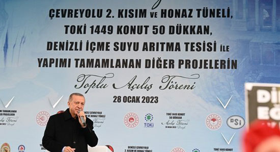 Erdoğan, Denizli Çevre Yolu 2. Kısım ve Honaz Tüneli, TOKİ 1449 Konut 50 Dükkan, Denizli İçme Suyu Arıtma Tesisi ile Yapımı Tamamlanan Diğer Projelerin Toplu Açılış Töreni'ne katıldı.