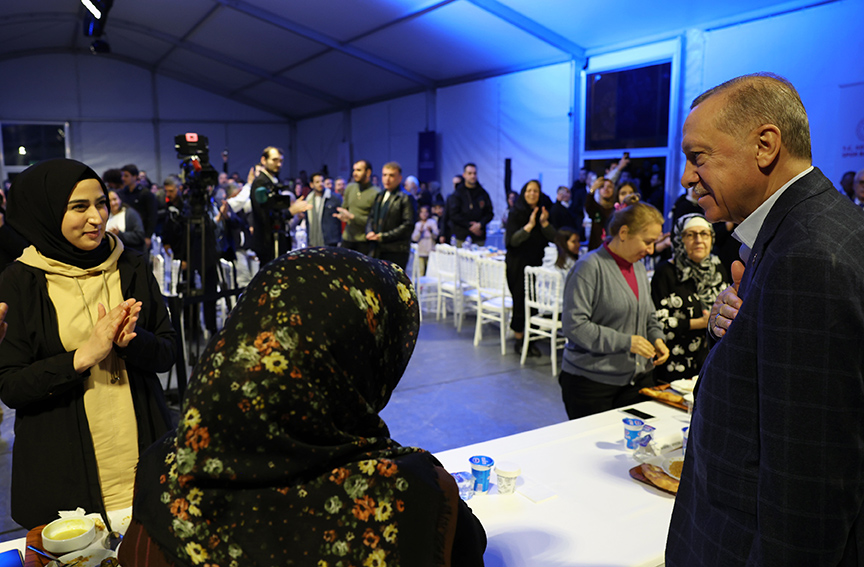 İftarını, Büyükçekmece'de Gençlik ve Spor Bakanlığına bağlı öğrenci yurdunda konaklayan depremzedelerle açan Cumhurbaşkanı Recep Tayyip Erdoğan, burada yaptığı konuşmaya, depremlerde hayatını kaybedenlere Allah'tan rahmet dileyerek başladı.